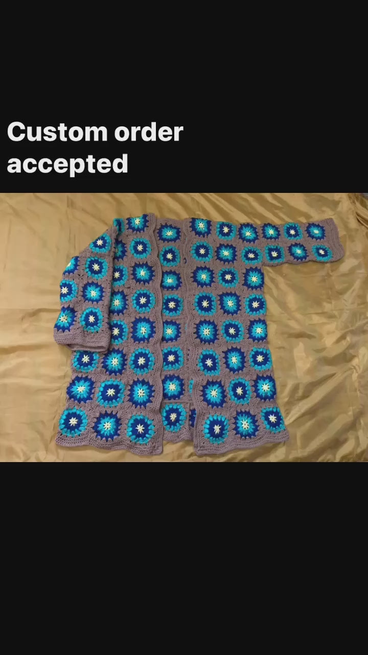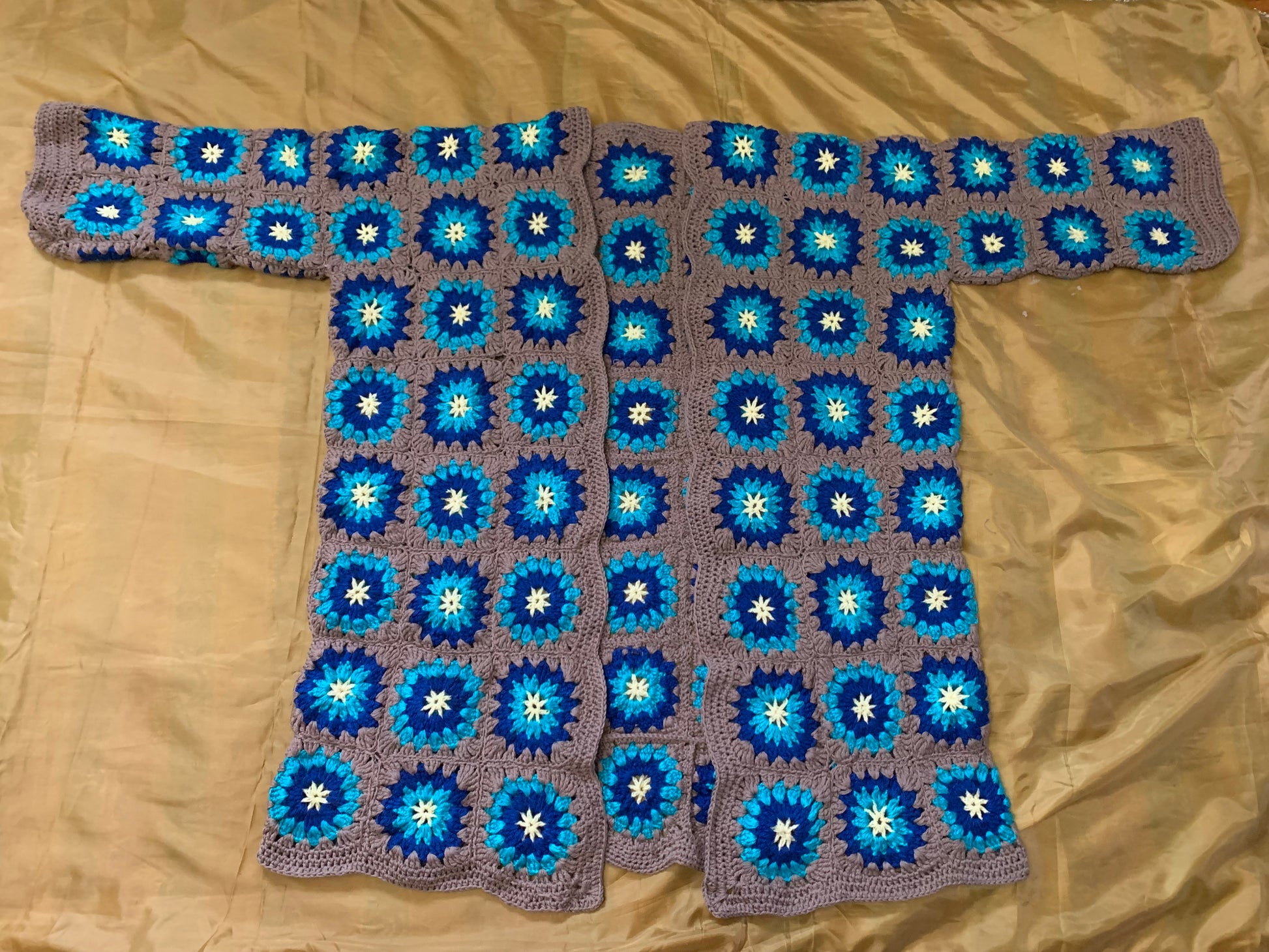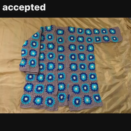 Beautiful long granny squares cardigan made of very soft cotton blend materials.
